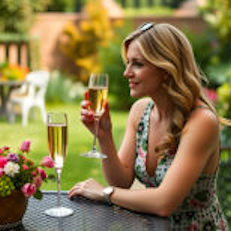Present: Drinking a glass of champaign, Nina